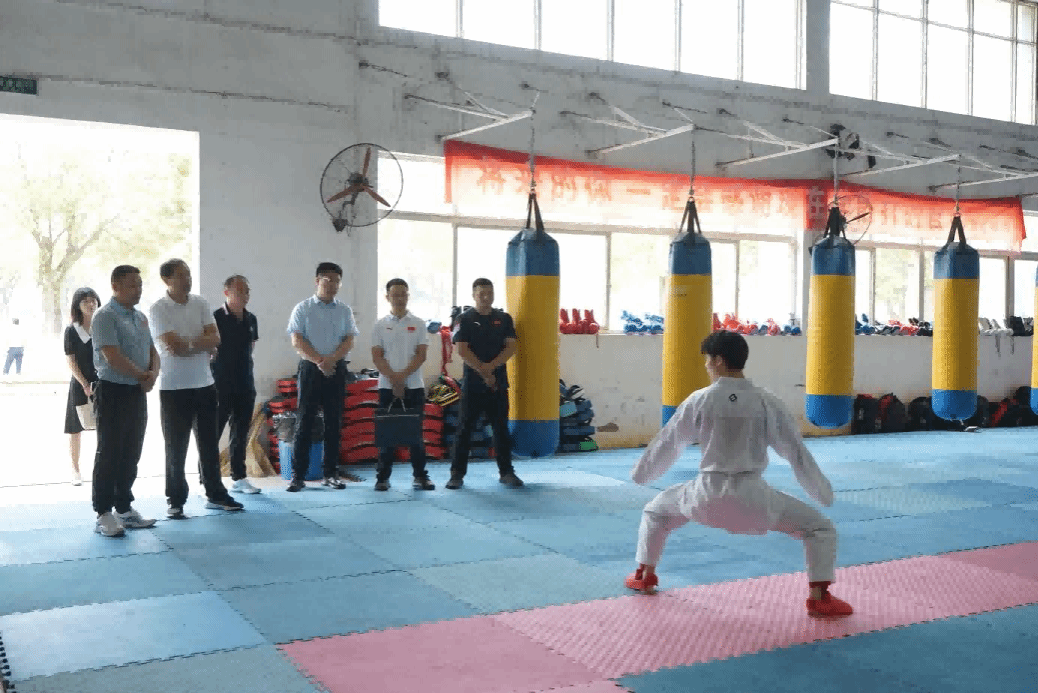6月14日上午,体育总局拳跆中心、中国空手道协会秘书长李向东、项目发展部主管李国华,湖北空手道协会秘书长曾卓等一行五人来我校调研。附属体育运动学校校长兼直属党支部副书记姜长林,副书记、副校长黎桂华,副校长王郓等相关人员陪同。