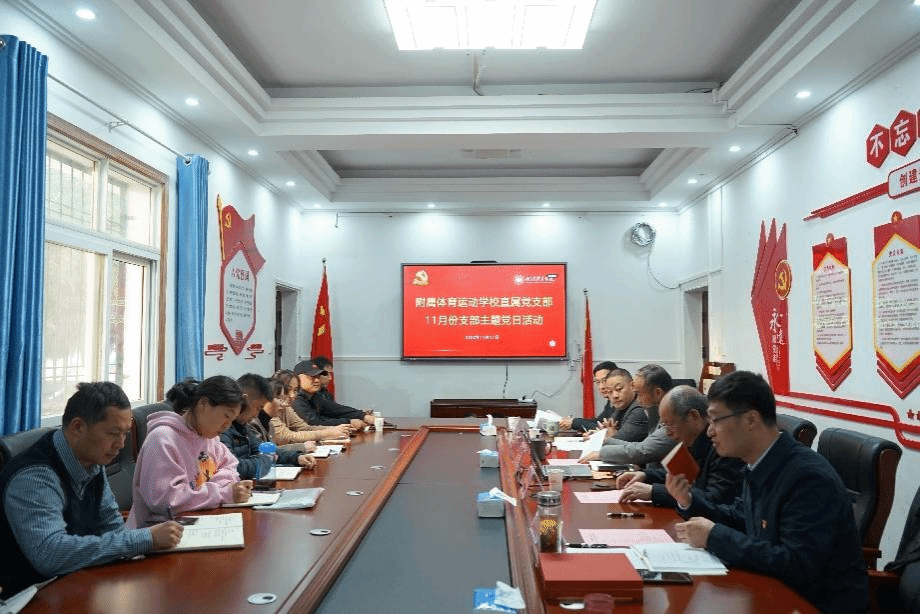 11月17日下午,附属体育运动学校直属党支部在豹澥校区会议室开展以“扛起新使命 迈向新征程”为主题的11月份支部主题党日活动。纪委书记、监察专员朱建中参加并指导支部党日活动,支部书记和潇天主持活动。