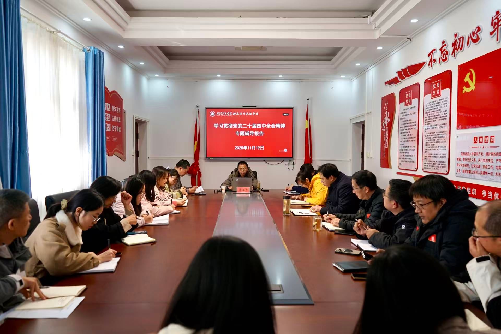 新闻网讯(通讯员郭向宇)11月17日-20日,附属体育运动学校举行学习宣传贯彻党的二十届四中全会精神专题读书班。校领导、中层干部、全体党员、教师代表通过个人自学、集中研学、交流研讨等形式参加学习。