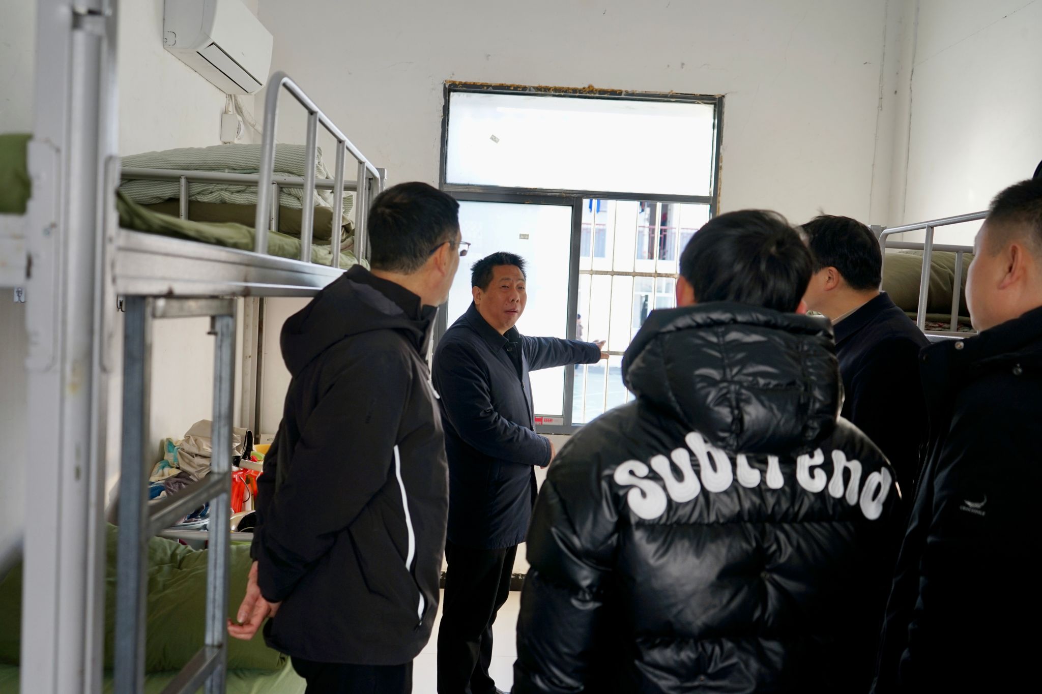 赵龙书记一行深入学生宿舍,采取“一间一间查、逐项逐点看”的方式,对宿舍楼消防设施配备、用电安全、应急通道畅通等情况进行全面细致排查。