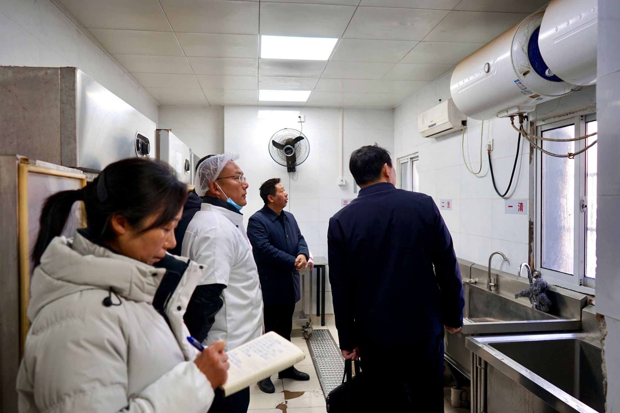 赵龙书记一行还前往食堂,实地检查食品原材料储存、加工制作流程、电器设备运行等情况。