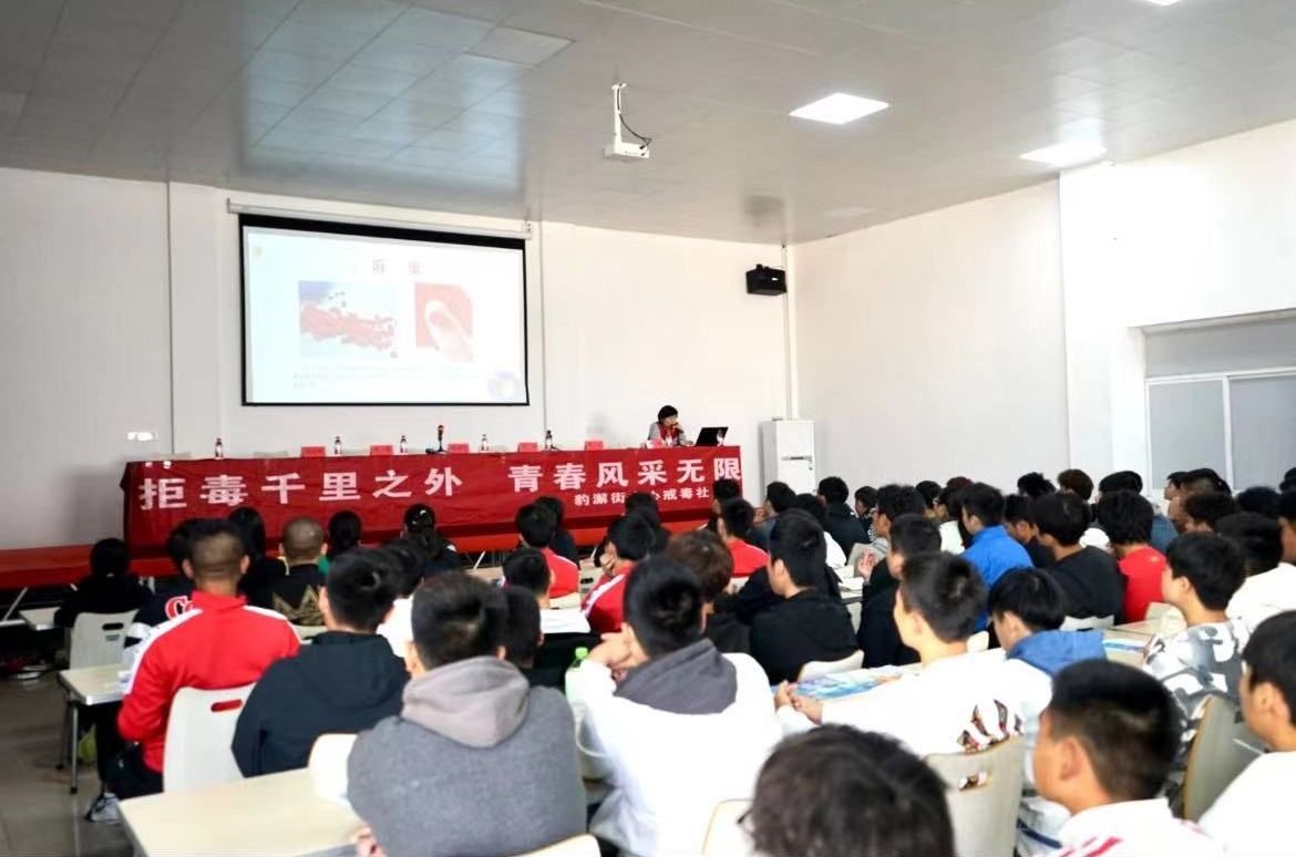 为进一步普及毒品预防知识,筑牢禁毒思想防线,全面提高学校师生的识毒、拒毒、防毒意识和能力,10月11日,武汉体育学院附属体育运动学校开展了禁毒宣传教育活动。豹澥街道党工委副书记、办事处主任王维,学校副书记、副校长黎桂华,东湖高新区禁毒大队一级警督雷波,豹澥派出所副所长李奇、管片民警刘凤辉等出席活动,活动由教务学工办主任陈剑主持。
