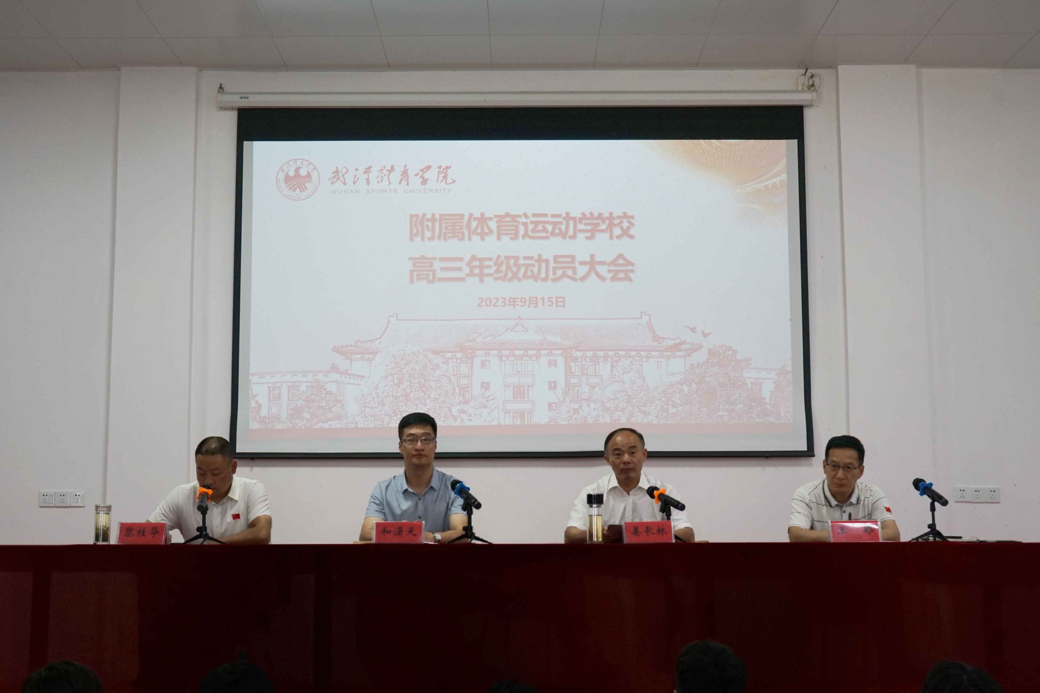 9月15日中午,附属体育运动学校在学校报告厅召开高三年级动员大会。校领导出席大会,副校长王郓主持,教务学工办和各项目部相关人员、全体高三师生参会。