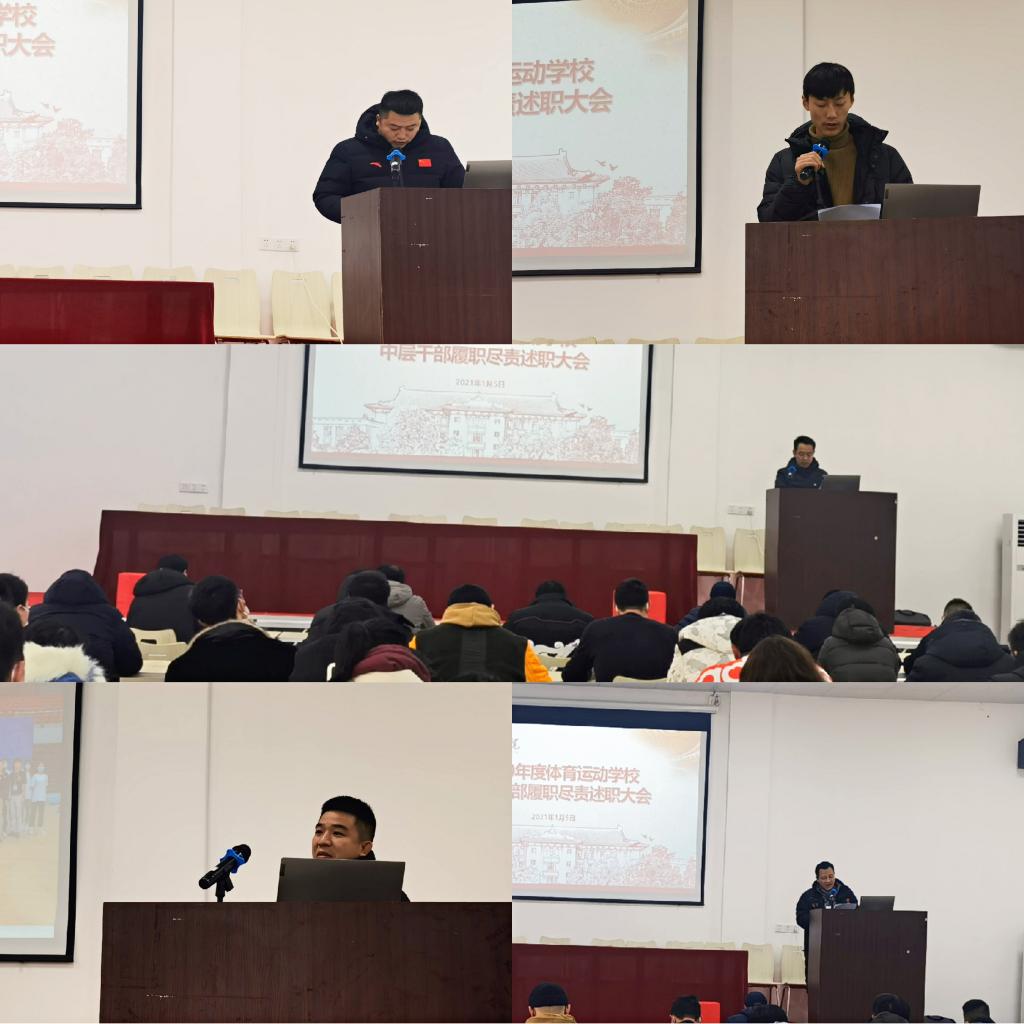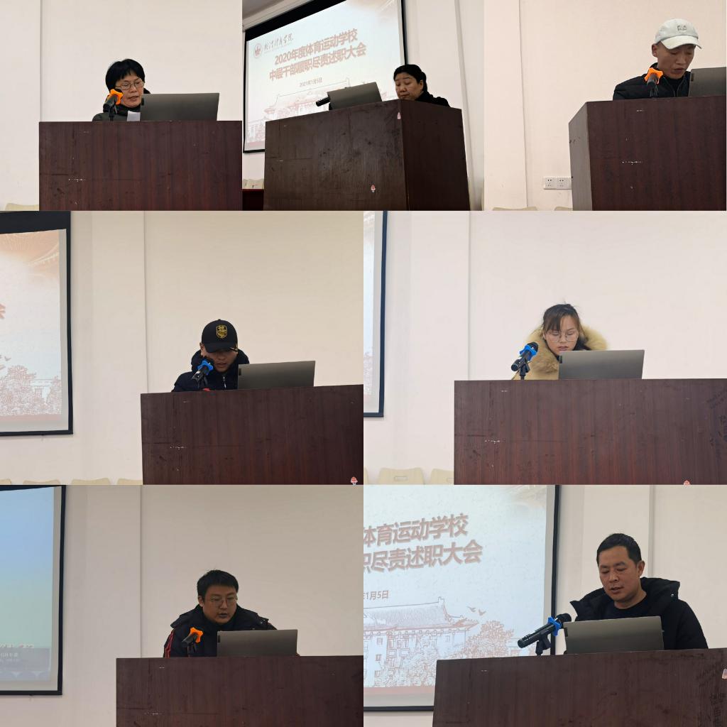 2021年1月5日上午,体育运动学校2020年目标管理述职暨中层干部述职测评大会在学校报告厅举行,体育运动学校班子成员,全体教师及行政人员参加本次大会。会议由体育运动学校直属党支部书记、校长姜长林主持。