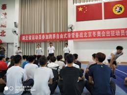 5月5日下午,湖北省运动员参加跨界自由式滑雪备战北京冬奥会出征动员会在省武术中心套路馆举行。省体育局党组成员、副局长水兵出席动员会并做重要讲话,省体育局竞技体育处、省武术中心、省体操中心、武汉体院附属体校负责人,及经过总局跨界选拔出的34名运动员、相关教练员、工作人员参加了动员会。动员会由武术中心主任王煦同志主持。我校共有14名学生参加了此次动员会。