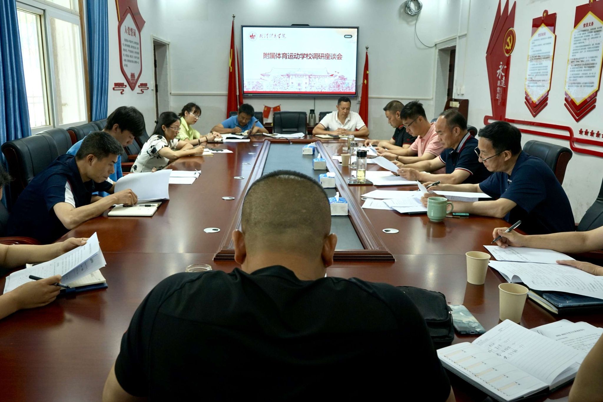 根据主题教育调研工作安排,6月2日上午,附属体育运动学校直属党支部书记和潇天、校长姜长林围绕“学校高质量发展道路研究”“改善办学条件、扩大办学规模路径研究”开展专题调研,会议由校长姜长林主持,校领导、中层干部参会。