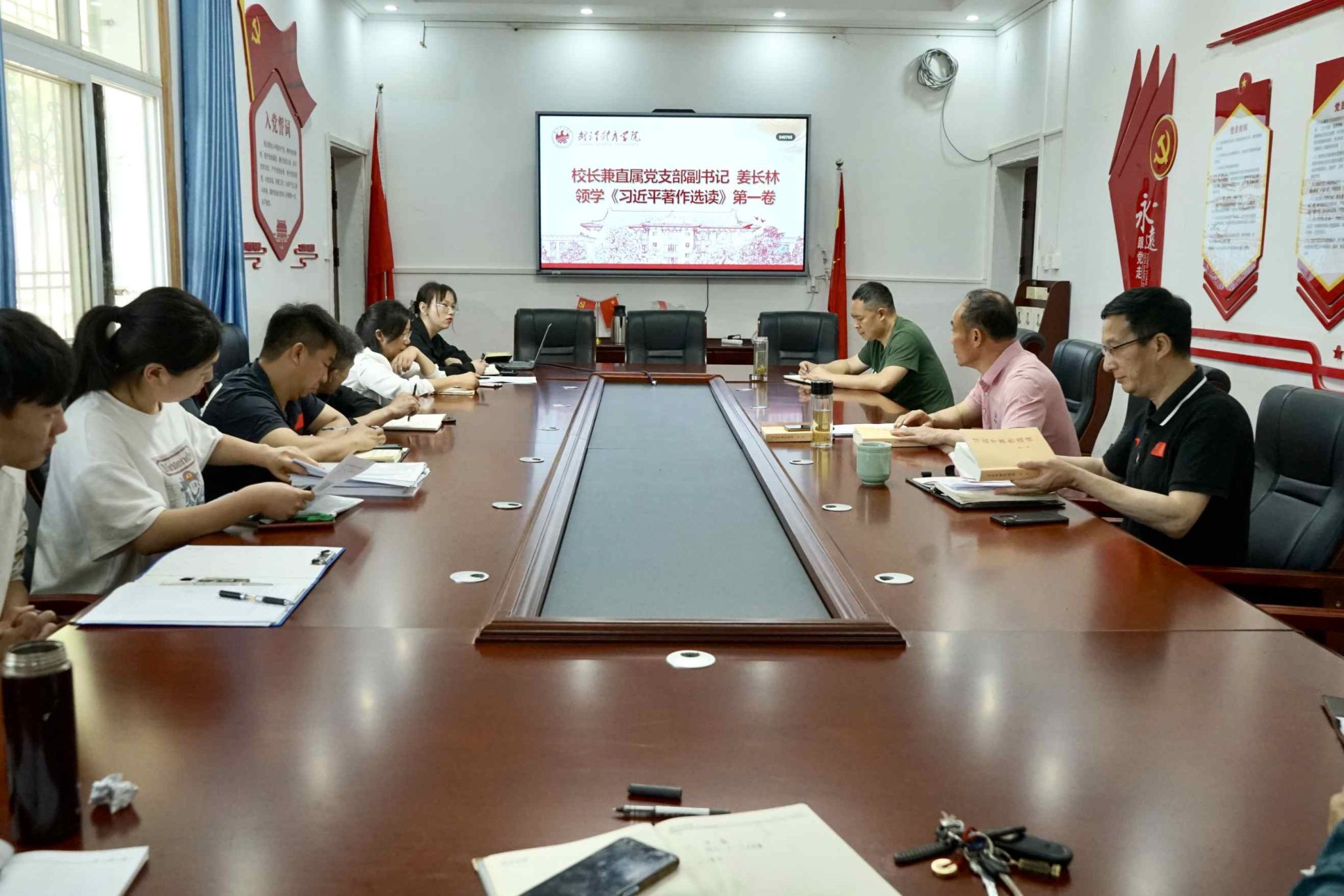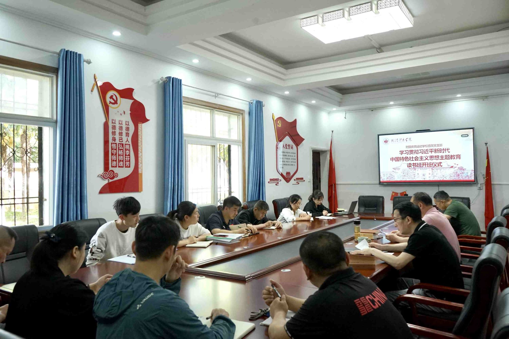 4月17日上午,附属体育运动学校学习贯彻习近平新时代中国特色社会主义思想主题教育读书班开班仪式暨首场专题学习会议在豹澥校区会议室举行。附属体育运动学校校长、直属党支部副书记姜长林主持开班仪式并领学《习近平著作选读》第一卷。全体在校校领导和中层干部参加学习。