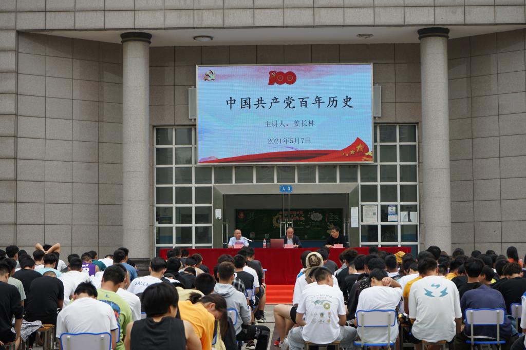 5月7日下午,体育运动学校党史学习教育主题报告会在教学楼门前广场举行。报告会由学校直属党支部书记、校长姜长林主讲,常务副书记田兆峰,副校长田勇出席会议,全体师生参会。