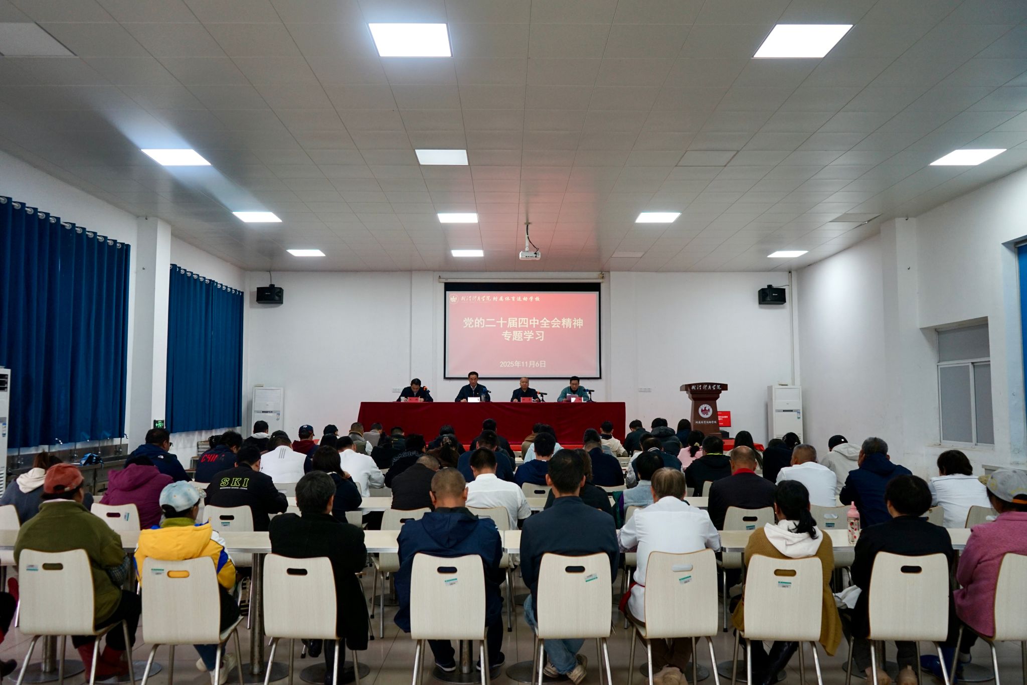 陶山强调,全体教职工一要提高政治站位,深刻把握全会精神实质,把学习贯彻全会精神作为当前和今后一个时期的重要政治任务。二要精心组织学习宣传,营造全员参与、全程覆盖的浓厚氛围,推动全会精神进课堂、进训练场、进师生头脑。三要坚持学用结合,把全会精神融入教育教学、体育训练和学校管理全过程,切实将学习成果转化为推动学校高质量发展、培养更多优秀体育人才的实际成效。